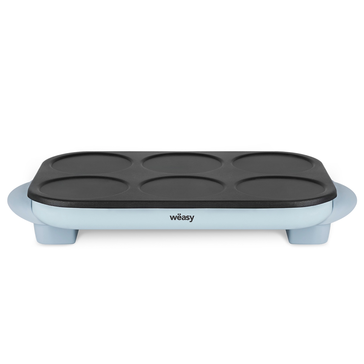 Wëasy GOO60 Party Crepes-Maker / 6 Mini-Crepes oder Pancakes/ 11,5 cm Durchmesser / bis zu 240°C / inklusive 6 Teigverteiler / 1500 W / schwarz