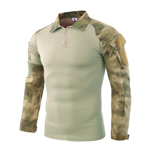 Per uomo Felpa con mezza zip Felpa militare Manica Lunga Collo alla coreana Top Esterno Traspirante Misto Cotone Mimetico Grigio scuro pitone nero Nero Viaggio Corsa