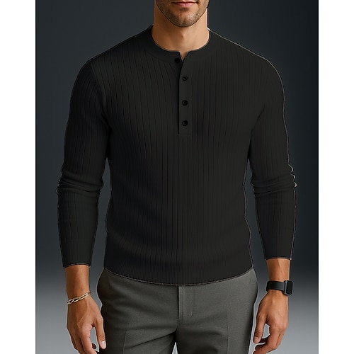 Per uomo Top casual Pullover Maglione Bottoni Manica Lunga Top Athleisure Autunno Tinta unita Di tendenza All'aperto Viaggio abbigliamento sportivo Abbigliamento sportivo Nero Bianco Rosso