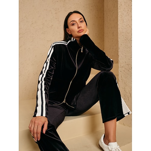 Per donna Felpa pullover Top casual Manica Lunga Top Athleisure Autunno A righe Di tendenza All'aperto Viaggio abbigliamento sportivo Abbigliamento sportivo Nero Bianco Rosso