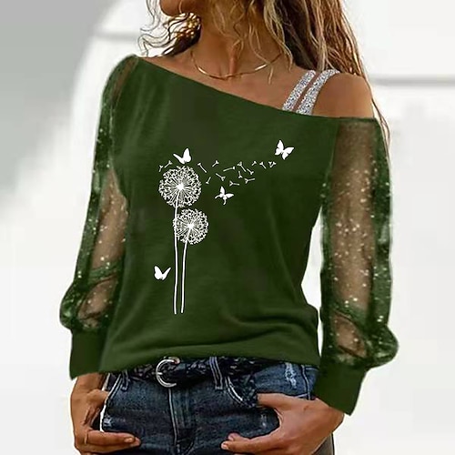 Per donna Blusa Farfalla Vintage Elegante Manica Lunga Top con spalle scoperte Top Regolari Quotidiano Ferie Uscire Pizzo Rete Nero Vino Blu Viola Verde Primavera Autunno