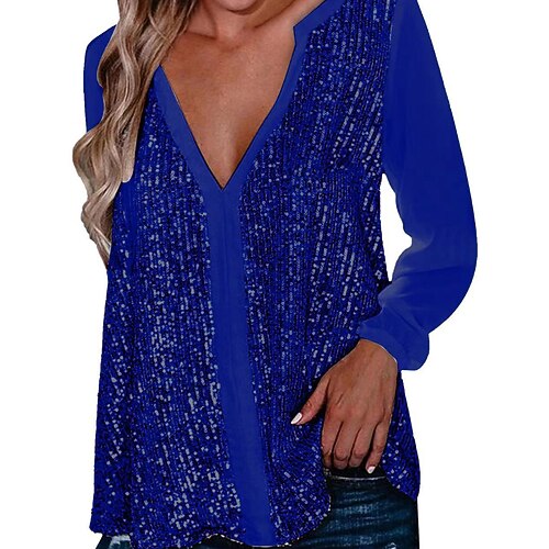 Capodanno Per donna Blusa Top con paillettes Semplice Elegante Manica Lunga Scollo a V Top Regolari Quotidiano Ferie Uscire Paillettes Blu Argento Nero Vino Rosa Estate Autunno