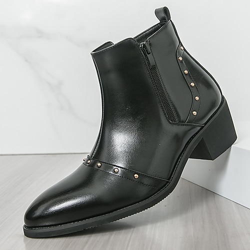 stivaletti da uomo in similpelle nera con cerniera e dettagli borchiati: calzature eleganti e comode per feste invernali e incontri informali