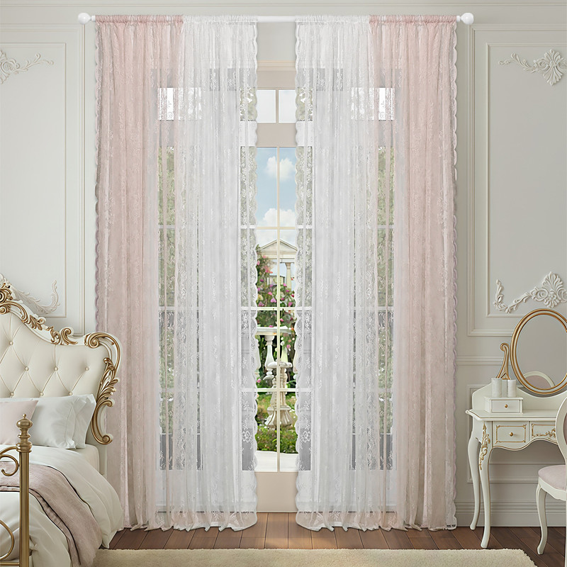 2/4 Pcs Two-Tone Lace Sheer Curtains, Rod Pocket Jacquard Lace, Light-Filtering and Elegant Window Drapes, Ready-Made Luxury Curtains for Home Décor