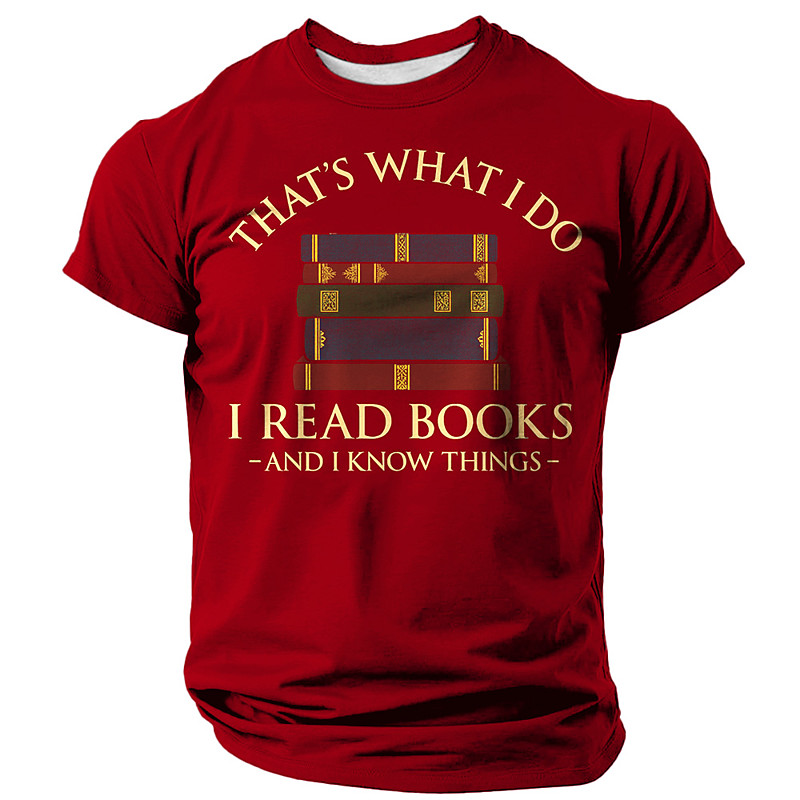 Mens Book Lover Graphic T-Shirt: 'That's What I Do I Read Books I Know Things' Quote Short Sleeve Tee