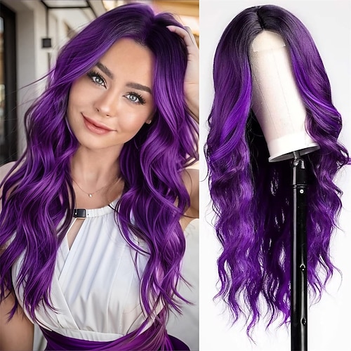Parrucca di Carnevale 2026 Rosso Blu Viola Riccio Ondulato Lungo Parrucca sintetica da festival Martedì grasso Parata Capelli per costumi da cosplay per Ragazze