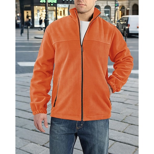 Per uomo Maglia Felpa in pile Felpa con zip intera Aalbicocca Nero Viola Arancione Grigio chiaro Colletto Mao Semplice Con zip Tasca Sport Outdoor Quotidiano Ferie Poliestere Streetwear Essenziale