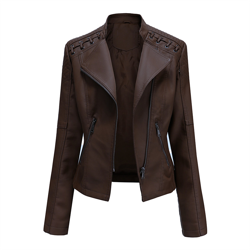 Women's Faux Leather Jacket Biker Jacket Waterproof Windproof Zipper Pocket Modern Outdoor Casual Street Style Plain Outdoor Street Daily Wear Going out Zipper Short Lapel Regular Fit Long Sleeve