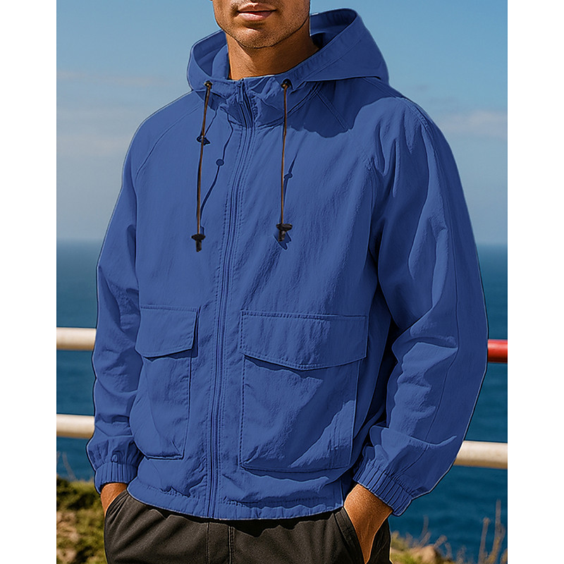 Men's Hoodie Jacket Outdoor Jacket Pockets Long Sleeve Top Athleisure Fall Solid Colored Waterproof UPF50 Outdoor Jogging Running Sportswear Activewear Black Green Dark Blue
