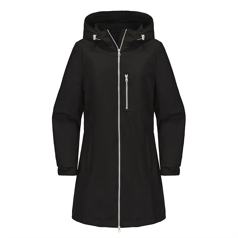 Women's Trench Coat Waterproof Rain Jackets Rain Coats Waterproof Windproof Zipper Pocket Fashion Outdoor Plain Going out Weekend Zipper Regular Hooded Regular Fit Long Sleeve Outerwear Black White