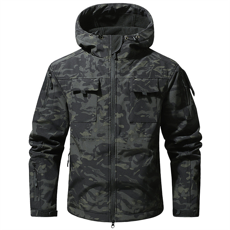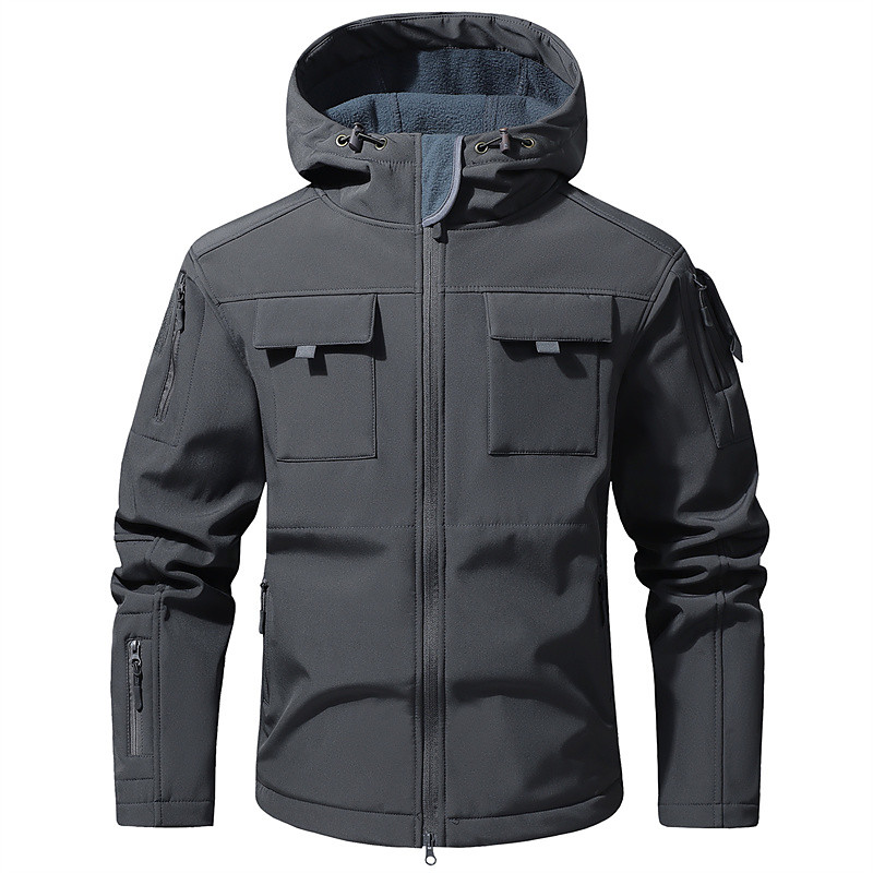 Men's Outdoor Jacket Softshell Jacket Hiking Jacket Vacation Daily Windproof Waterproof Pocket Fall Winter Plain Camouflage Fashion Classic Hooded Regular Gray Green Dark Gray Black Green Khaki Jacket