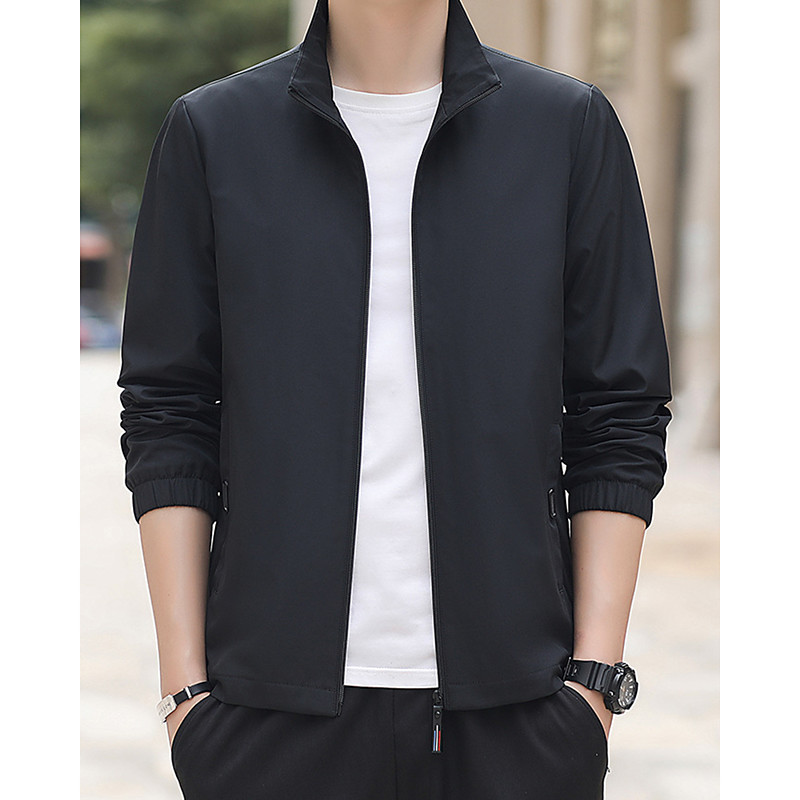 Men's Zip Up Jacket Bommber Jacket Casual Coats with Pockets Long Sleeve Top Athleisure Solid Colored Waterproof Lightweight Gym Hiking Workout Sportswear Activewear Black Blue Grey
