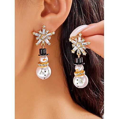 orecchini natalizi in lega da donna con design a pupazzo di neve e fiocco di neve, perfetti per la moda delle feste e come regalo festivo
