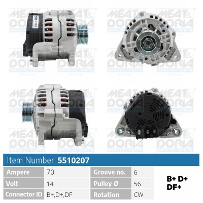 Laturi 14V 70A Meat & doria 5510207 - ford fiesta iv, fiesta skåp/stor limousine, ka, mazda 121 iii - OE 1001868, 1025545, 1036244