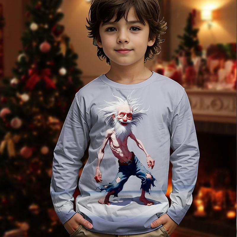 Christmas Boys' 3D Graphic Cartoon T shirt Tee Long Sleeve Spring Fall Fashion Basic Kids 4-12 Years Crew Neck Outdoor Casual Daily Regular Fit
