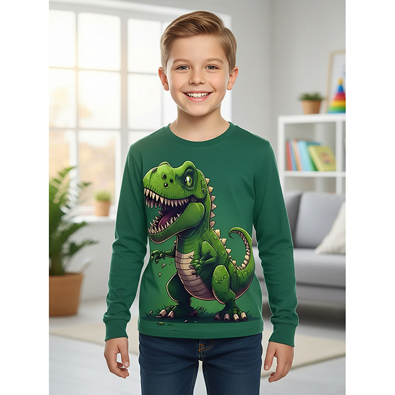 Boys 3D Dinosaur Tee Long Sleeve 3D Print Fall Winter Sports Fashion Streetwear Kids 3-12 Years Crew Neck Outdoor Casual Daily Regular Fit