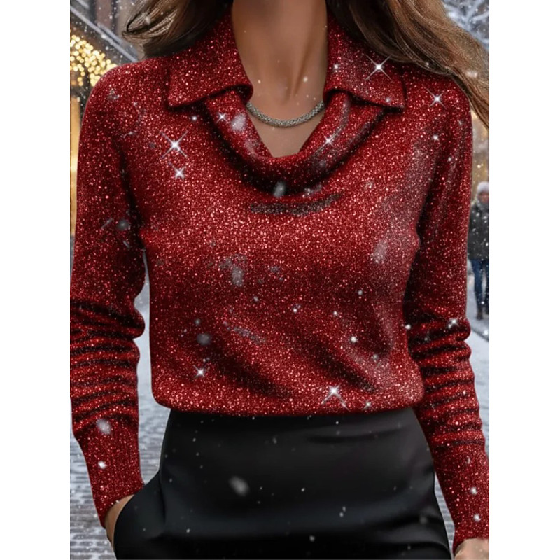 Women's Shirt Ombre Graphic 3D Elegant Stylish Basic Long Sleeve Cowl Neck Regular Tops Work Party Evening Wear Daily Ruched Draped Wine Blue Green Fall Winter