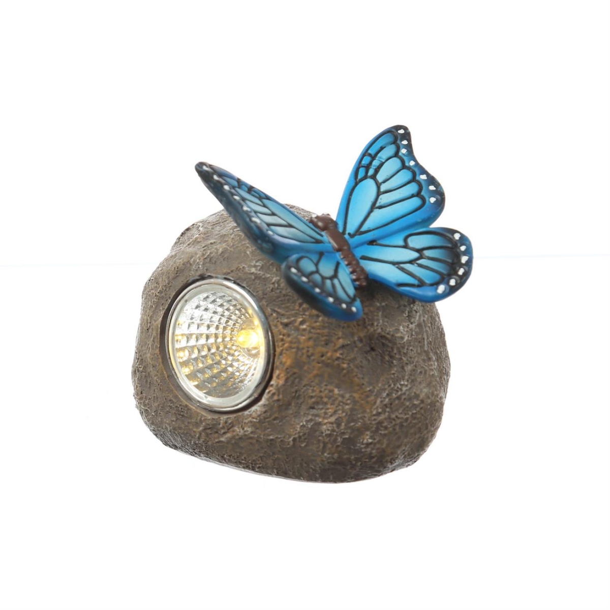 MARELIDA LED Solar Stein mit blauem Schmetterling Gartenfigur Gartendeko H:9cm