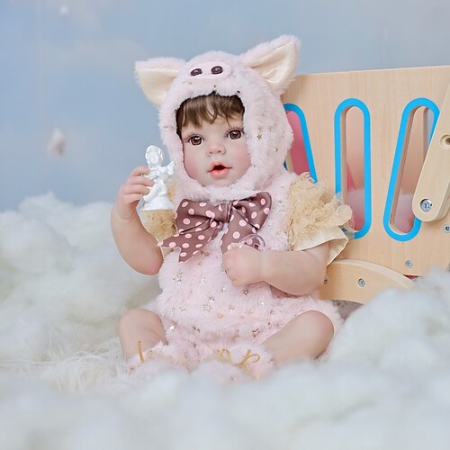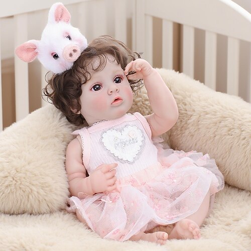 Reborn Babypuppen - 22 Zoll Weichkörper Realistische Babypuppe Mädchen Hübsches Wachblondes lockiges Haar Mädchen Bebe Reborn de Silicona Real Life Babypuppen mit Geschenkbox für Kinder ab 3 Jahren