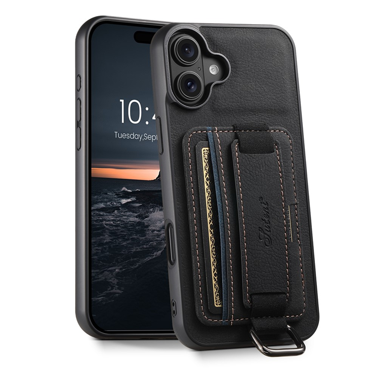 SUTENI Mobilskal till iPhone 16 Plus Litchi Texture - Svart