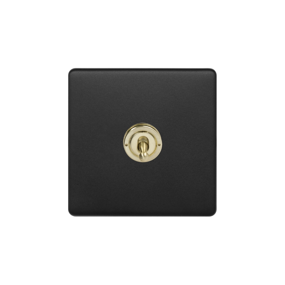 Soho Lighting Matt Black & Brushed Brass 20A 1 Gang 2 Way Toggle Switch Screwless