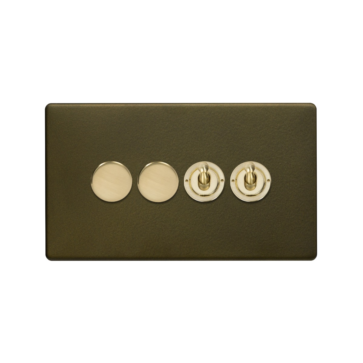 Soho Lighting Bronze with Brushed Brass 4 Gang Switch with 2 Dimmers (2x150W LED Dimmer 2x20A 2 Way Toggle)