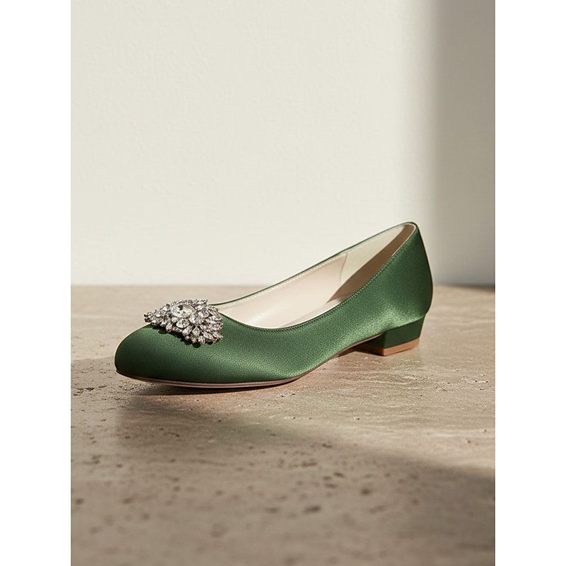 Women's Elegant Satin Flats with Rhinestone Embellished Toe – Classic Round-Toe Dress Shoes for Ladies, Perfect for Formal Events, Weddings, Parties Refined Everyday Wear