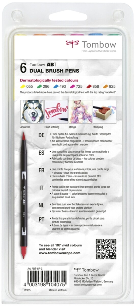 Tombow Dual-Fasermaler ABT mit Rundspitze/Pinselspitze Wasserbasis dermatologisch getestet VE=6x6 Stück