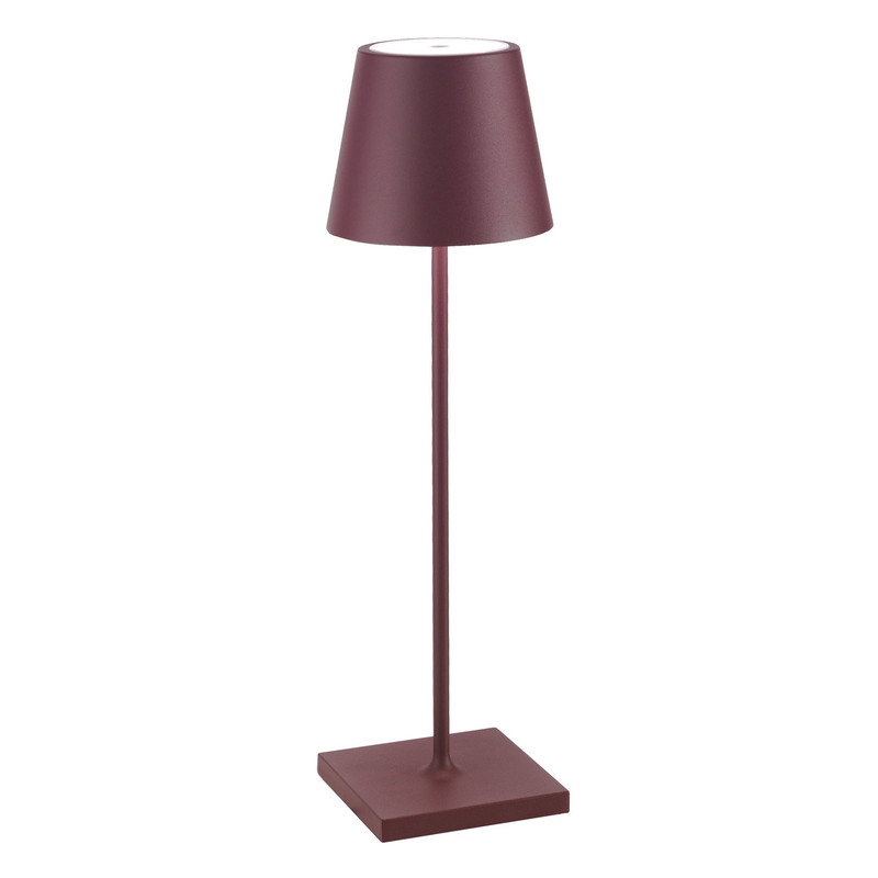 Zafferano Poldina Pro Bordeaux LED-Tischleuchte, wiederaufladbar und dimmbar mit einer Akkulaufzeit von bis zu 12 Stunden. Für den Außenbereich IP65