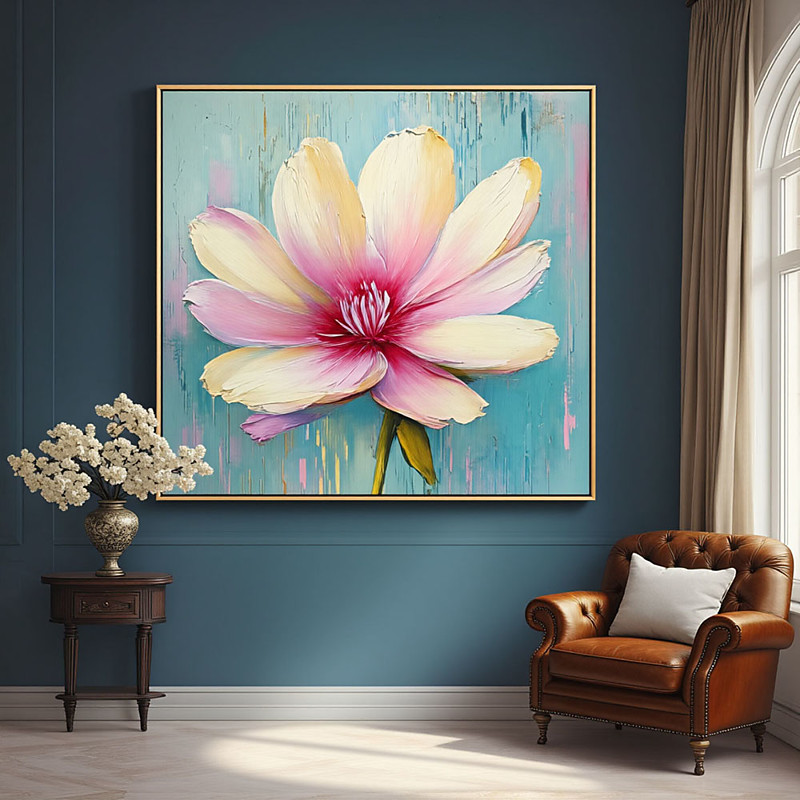 Hand Painted Pink Flower Oil Painting Style Canvas Wall Art Wall Hanging Living Room Decor Modern Design Floral Art