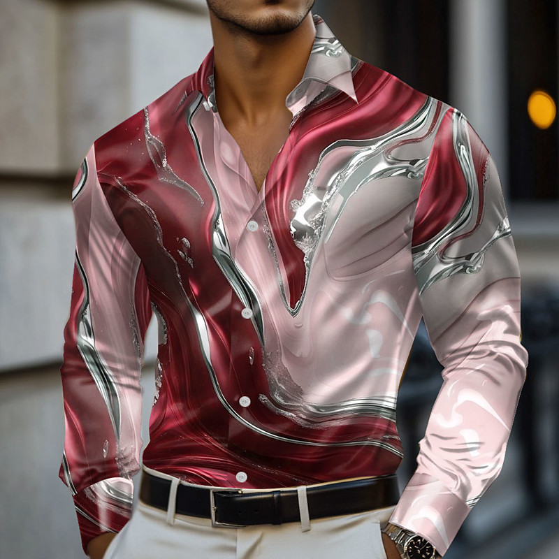 Men's Marble Abstract Liquid Art Shirt Satin Shirt Dress Shirt Long Sleeve Fashion Casual Vacation Dailywear Summer Spring Fall Turndown 3D Print Button Up Shirts Blue green Red Blue Green Gray
