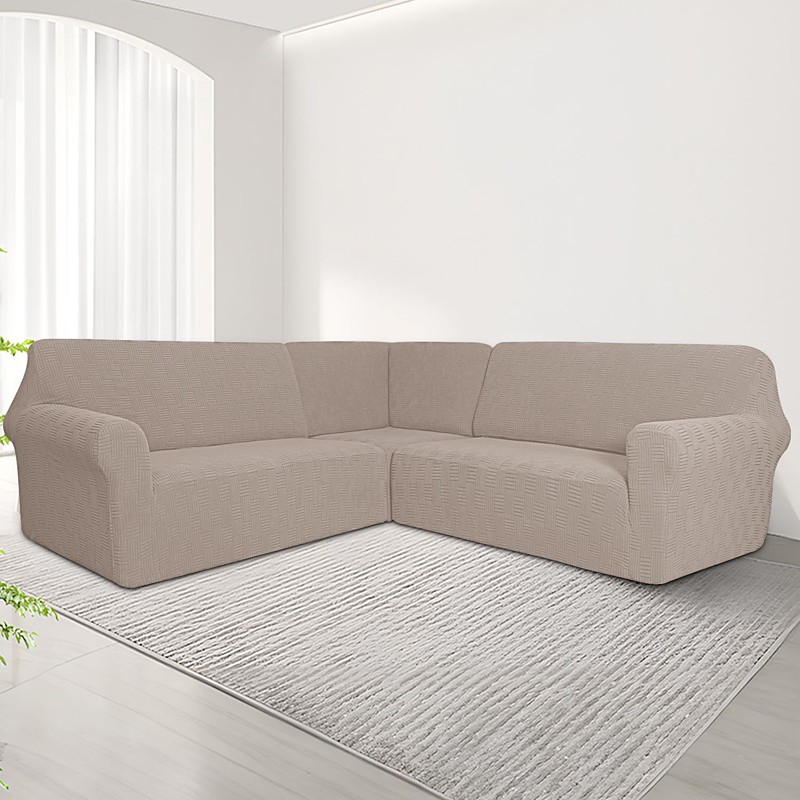 5-Seater Modular Sofa Cover Set - 3-Piece Sectional Couch Cover with 5x5 Grid Stitching and Jacquard Fabric Upholstery for Living Room