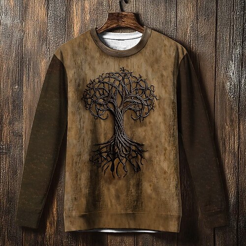 Per uomo Maglia Verde militare Blu Marrone Girocollo Albero della vita Yggdrasil Nodo celtico Stampato Casuale Quotidiano Ferie Vintage Vichingo Autunno Inverno Abbigliamento Felpe con cappuccio Felpe