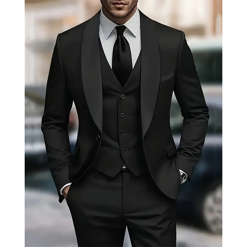 Men's BlazerVestDress Pants Set Suits Business Cocktail Party Wedding Party 3 Piece Fashion Casual Spring Fall Polyester Color Block Pocket Buttons Comfortable Single Breasted Blazer Black White