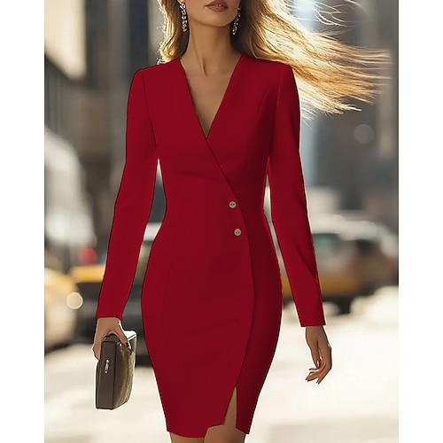 Per donna Mini Abito Abito blazer Tubino Elegante Moda Moderno Quotidiano Ufficio Ferie Vestibilità regolare Semplice Manica Lunga Scollo a V Nero Giallo Rosa Rosso Autunno Inverno