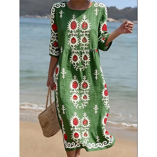 Per donna Abito Midi Abito a Tubino Vacanza Casual Spiaggia Spiaggia Uscire Vestibilità comoda Floreale Grafico Manica 3/4 Girocollo Verde Estate Primavera