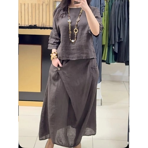 Per donna Set di biancheria in cotone Set di gonne Manica Lunga Girocollo Tinta unica Elegante Moda Streetwear Casuale Quotidiano All'aperto Nero Bianco Giallo Primavera Estate Vestibilità comoda