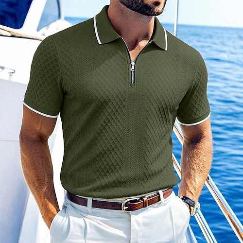 Per uomo Polo Testurizzato Casuale Streetwear Bavero Manica Corta Essenziale Moderno Geometrico Semplice Leggero Bottoni Estate Primavera Vestibilità comoda Nero Bianco Vino Blu marino Verde scuro