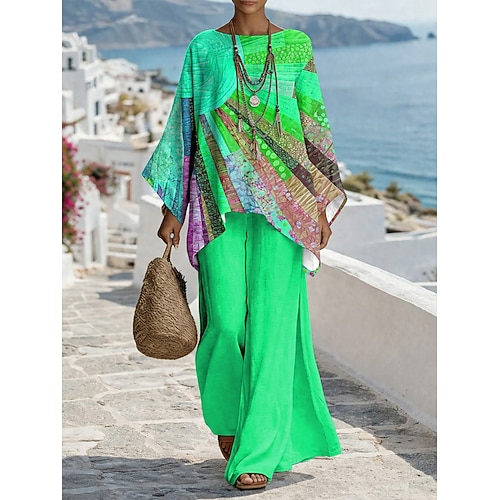 Per donna Set di Pantaloni Manica 3/4 Girocollo Grafico Geometrico Stampato Moda Streetwear Casuale Quotidiano All'aperto Blu Viola Arancione Estate Vestibilità comoda