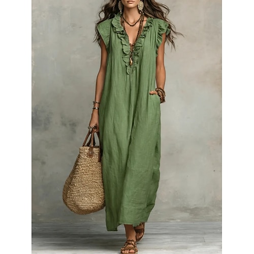 Per donna Abito maxi Abito a Tubino Abito Estivo Casual Quotidiano Vestibilità comoda Semplice Senza Maniche Scollo a V Blu Nero Bianco Rosso Estate Primavera