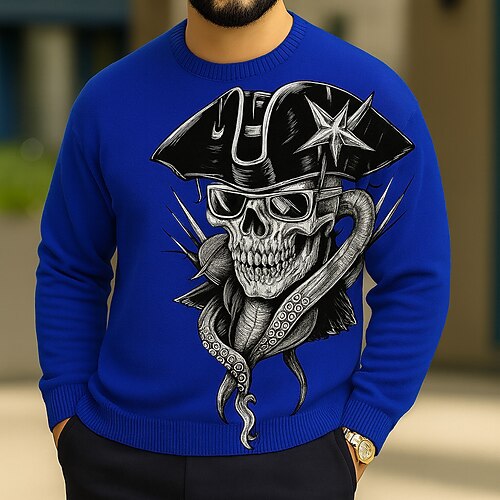 Halloween Per uomo Teschi Maglione Maglieria Girocollo Casual Vacanza Casa Quotidiano Stampa 3D Lavoro a maglia Tenere al caldo Manica Lunga Primavera Autunno Inverno Bianco Blu Verde