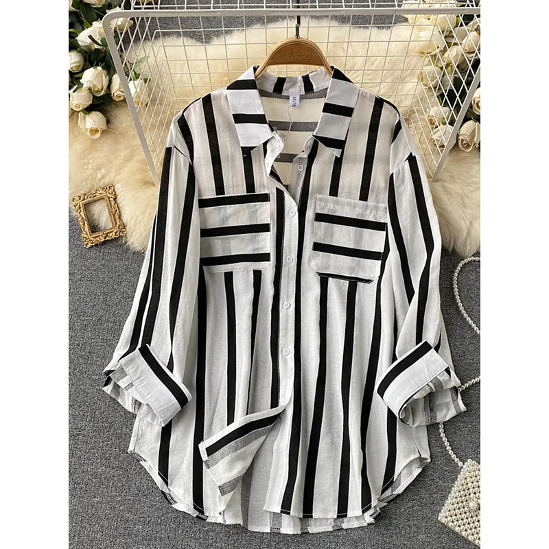 Women's Shirt Blouse Striped Stylish Casual Long Sleeve Shirt Collar Regular Tops Daily Buttons Black Yellow Red Green Summer Spring Fall