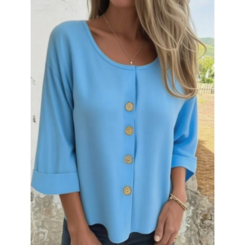 Women's Blouse Solid Color Stylish Casual Long Sleeve Crew Neck Regular Tops Daily Black White Brown Apricot Light Blue Summer Spring
