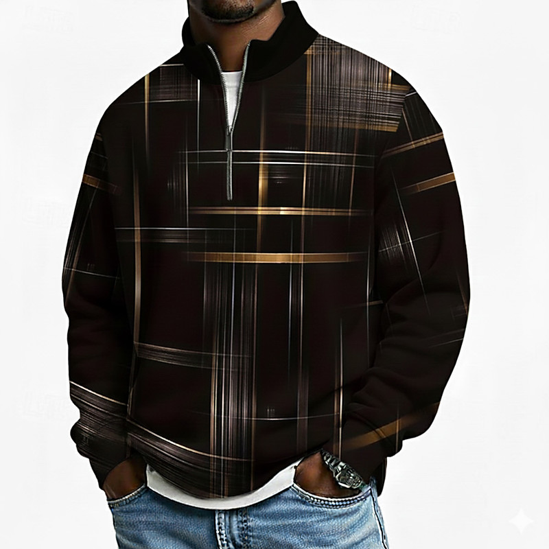 Men's Geometic Line Polo Long Sleeve Standing Collar Athleisure Vacation Athleisure Casual Daily 3D Print Spring Fall Winter Blue Black Red