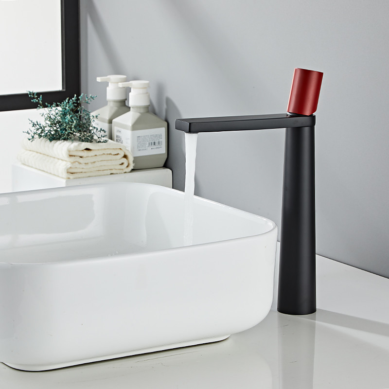 Bathroom Sink Faucet Waterfall Spout, Brass Mixer Basin Taps, Single Handle One Hole Bath Taps Painted Finishes Tall Body Modern Style
