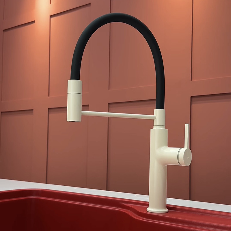 Kitchen Sink Mixer Faucet with Pull Down Sprayer, 360 swivel High Arc Single Handle Spring Kitchen Taps Deck Mounted, One Hole Brass Kitchen Sink Faucet Centerset Water Taps