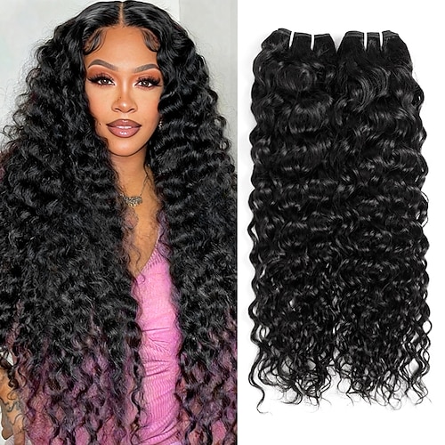 Brasilianisches Echthaar, Farbe 1b #, Naturschwarz, Wasserwellen, 2 Bündel à 200 g, 25–70 cm