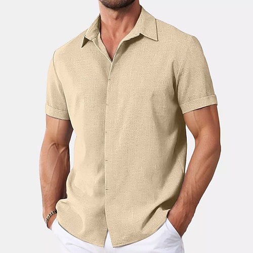 Per uomo Camicia Camicia di lino Camicia Estiva Camicia button-down Camicia casual Camicia da Spiaggia Semplice Vacanza Casuale Nero Bianco Rosa Blu Manica Corta Colletto Estate Abbigliamento
