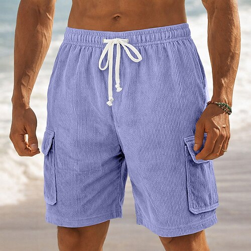 Herren Shorts Sommershorts Freizeitshorts Cordshorts Tasche Elastischer Bund Kordelzug Einfach Komfort Atmungsaktiv Kurz Outdoor Urlaub Sport Lässig Meerblau Schwarz