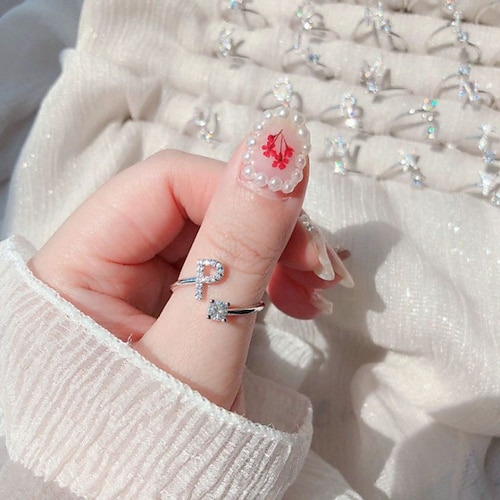 1 pezzo Anello For Per donna Zircone cubico Chiaro Quotidiano Regalo Ferie Lega Alfabetico